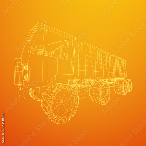 Truck or lorry car. Cargo vehicle model wireframe low poly mesh vector illustration