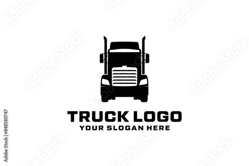 Truck Trailer Logo Design Inspiration. Transport Logistics, Shipping, Express, Cargo Company, Fast Delivery. Silhouette Illustration Logo Design Template, Emblem Isolated on White Background.