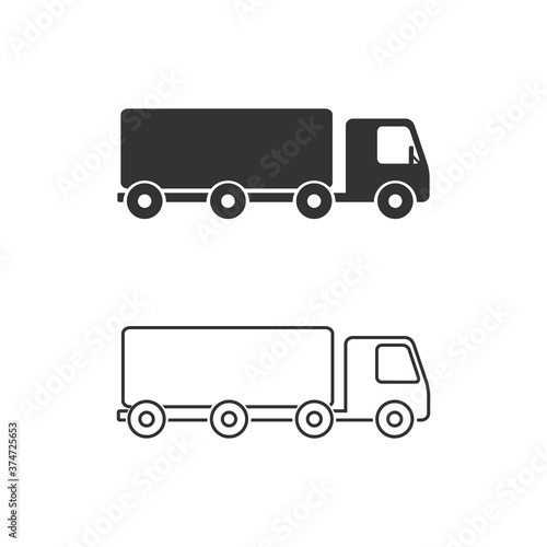 Truck trailer vector line icon set. Semi lorry wagon commercial transport logistic concept. Van delivery shape sign isolated on white