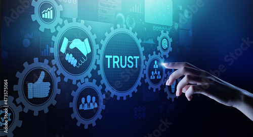 Trust customer relations reliability business concept. Pointing and pressing on virtual screen.