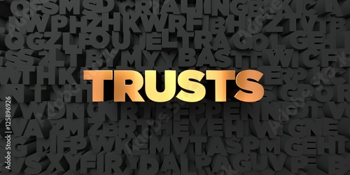 Trusts - Gold text on black background - 3D rendered royalty free stock picture. This image can be used for an online website banner ad or a print postcard.