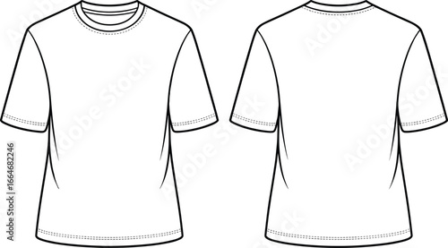 T-shirt vector flat sketch, short sleeve crew neck fashion cad drawing, unisex apparel design template, clothing technical illustration, front and back view