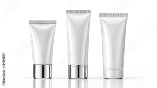 tubes of cream cosmetics three different sizes isolated on white background