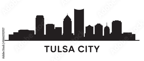 TULSA City Oklahoma Skyline Silhouette Cityscape Vector. Vector black silhouette. with white background