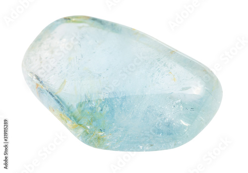 tumbled blue Topaz gemstone isolated on white