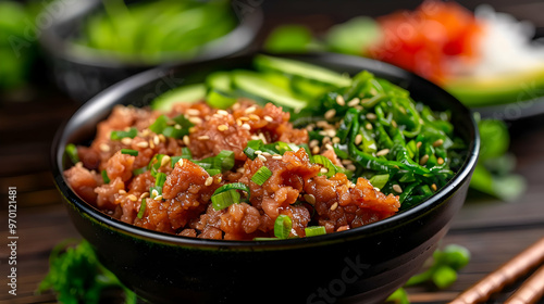 Tuna Poke Bowls Ceramic Bowls With Vintage Flat
