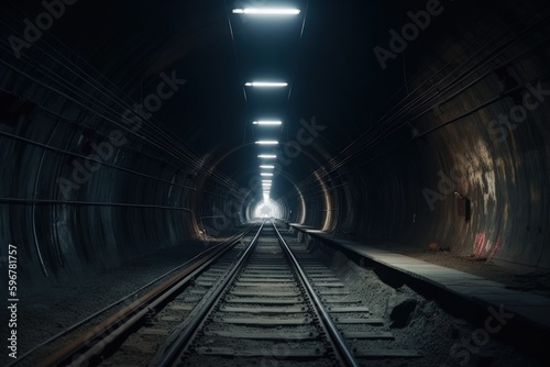 Tunnel and train tracks illustration. Generative AI