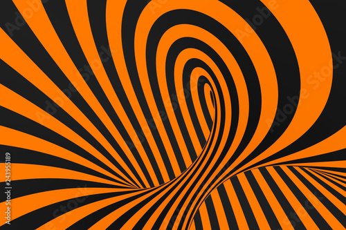 Tunnel optical 3D illusion raster illustration. Contrast lines background. Hypnotic stripes ornament. Psychedelic, abstract art
