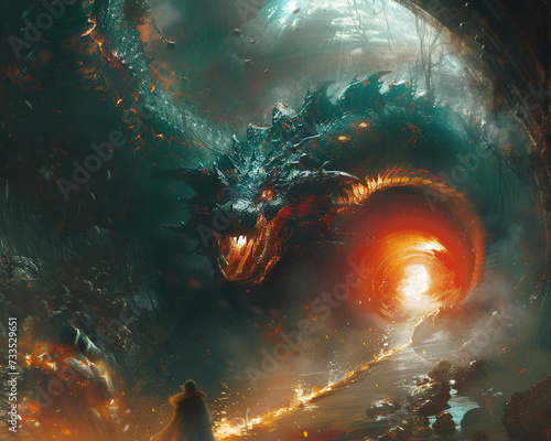 tunnelDrakania and a sea serpent in a steampunk duel crystal energy crackling