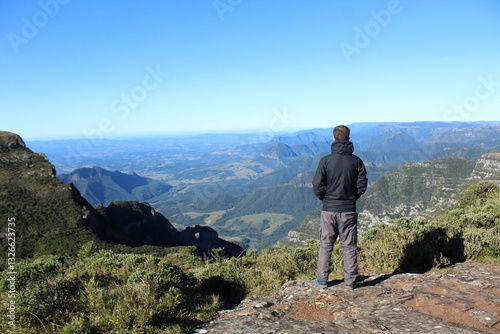 turista no morro da igreja em urubici, santa catarina
