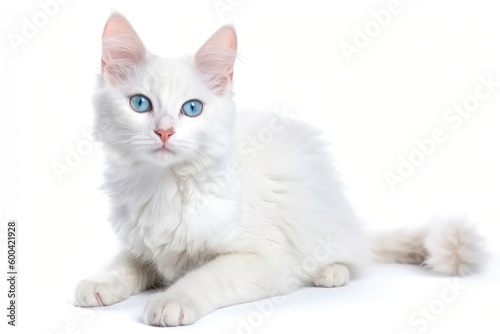 Turkish Angora Kitten On White Background, Full Body. Generative AI
