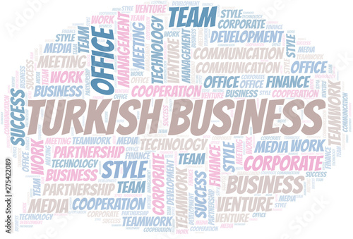 Turkish Business word cloud. Collage made with text only.