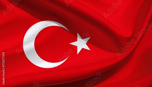 Turkish flag with crescent and star on red background, symbolizing national pride.