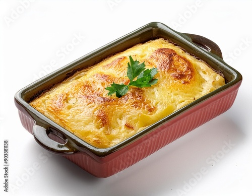 Turkish food potato gratin on white background