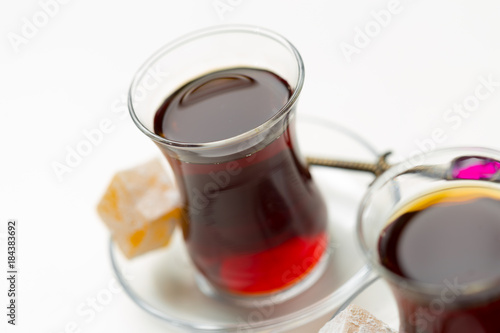 Turkish tea in traditional glass isolated on white background