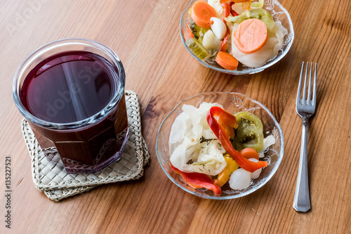 Turkish Turnip Juice with pickles / Salgam Suyu.
