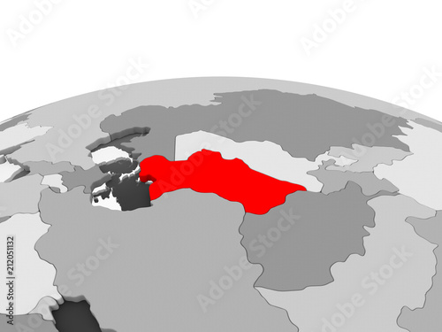 Turkmenistan on grey globe