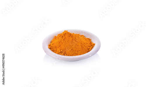 turmeric powder in a bowl isolated on white background