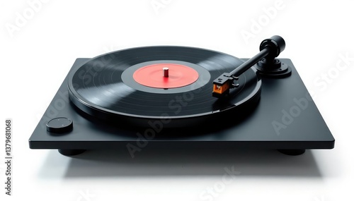 Turntable with vinyl record, isolated on white, sound, dance, black