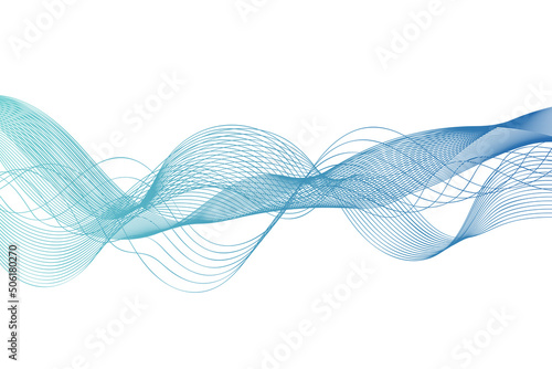 Turquoise blue abstract wave lines flowing horizontally on a white background, ideal for topics about technology, music, science and the digital world