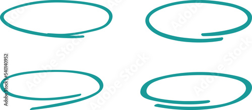 Turquoise circle, pen draw set. Highlight hand drawing different circles isolated on background. Handwritten circle. For marking text, numbers, marker pen, pencil and text check, vector illustration