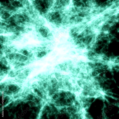 Turquoise Energy Burst Abstract Explosion Design with Glowing Light Flashes and Fractal Patterns