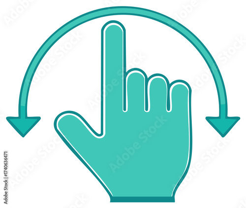 Turquoise Finger Swipe Gesture: Rotate Interaction Icon with Arrows