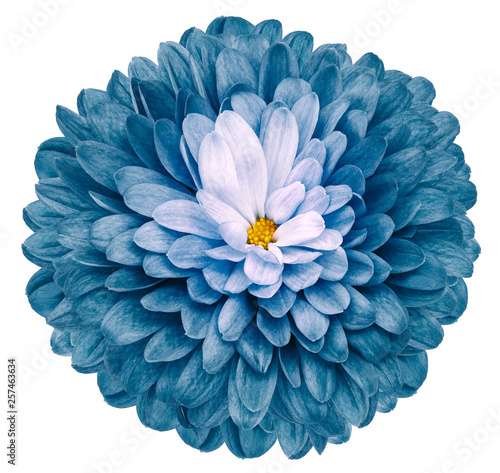 turquoise flower chrysanthemum on white isolated background with clipping path no shadows. Closeup. Nature.