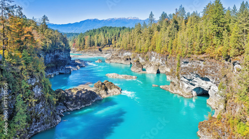 Turquoise River Gorge with Autumn Foliage.