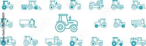 Turquoise Tractor Icon Collection Agriculture Farm Vehicle Outline On White