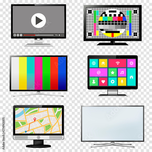 TV and computer monitor screen set on transparent background