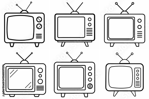 TV Outline Coloring Book Page Line Art Drawing Set