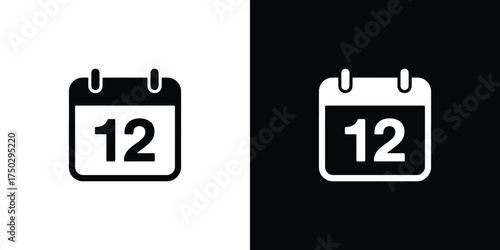 Twelfth Day Calendar Icon in Black and White Simple Reminder Design