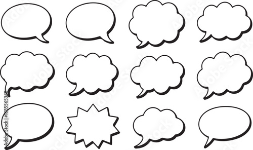 Twelve Black Outline Speech Bubbles and Thought Bubbles in a Grid talk bubble comic