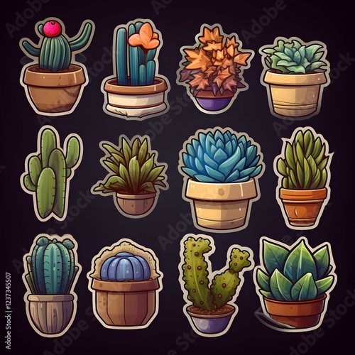 Twelve Cartoon Illustrations of Potted Plants