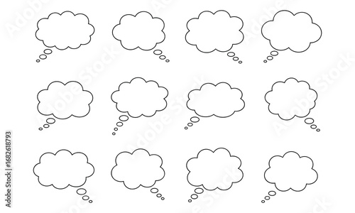 Twelve Empty Thought Bubbles Or Speech Bubbles In A Grid On White Background comic cartoon