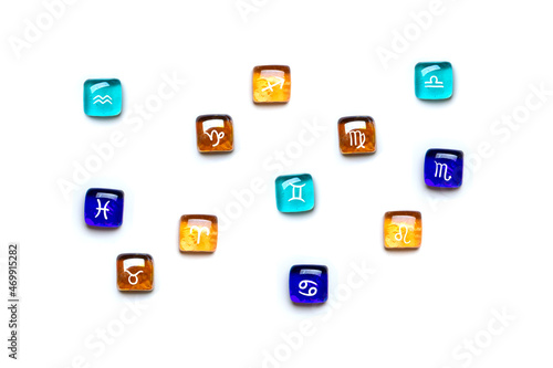 twelve signs of zodiac Three signs correspond to each element: Fire - Aries, Leo, Sagittarius, Earth -Taurus, Virgo, Capricorn, Air -Gemini, Libra, Aquarius, Water - Cancer, Scorpio, Pisces Top view