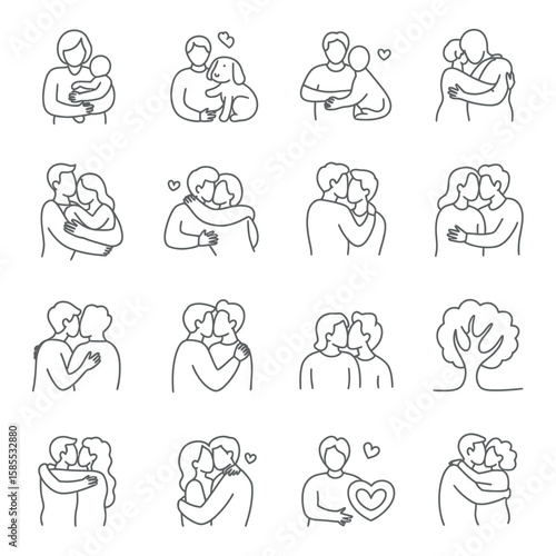 Twelve Simple Line Art Dog Illustrations Arranged in a Grid Pattern with Various Color Options
