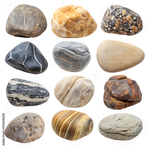 Twelve Smooth River Rocks Natural Stone Texture set art grey brown beige black