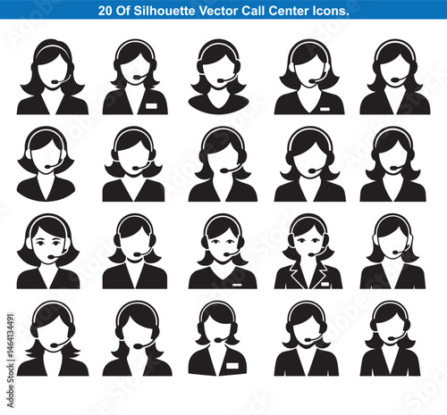 Twenty Call Center Agent Silhouettes Icons vector collection.
