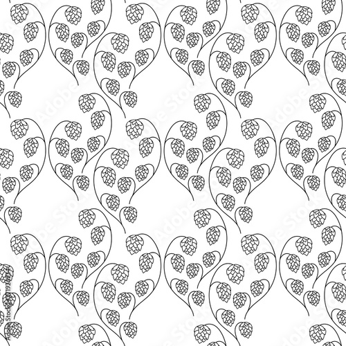 Twig of hops seamless pattern. Hand drawn vector background. Black and white