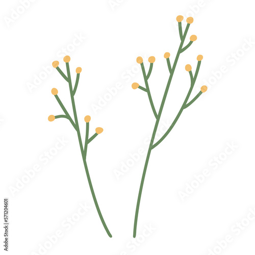 Twigs with yellow flowers. Vector illustration of a stylized plant in cartoon style. Isolated on a white background.