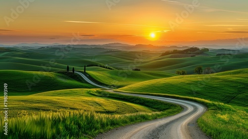Twilight Serenity on a Winding Tuscan Road amidst the Undulating Hills