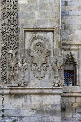 Twin minaret Cifte Minareli Madrasa, Artwork on the facade, Erzurum, Turkey