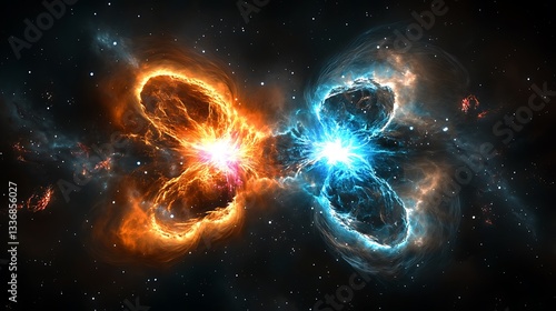 Twinstar system illuminating neon orange and electromagnetic phenomena in deep space