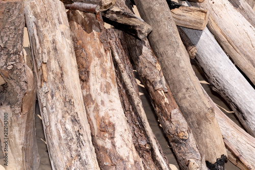 twisted Driftwood Background on sand beach
