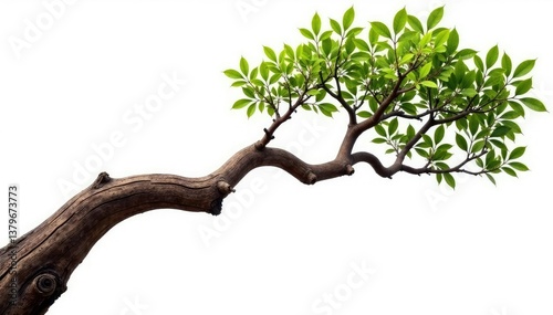 Twisted tree branch isolated on white background, wooden texture, isolated