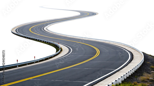 Twisty, Curved, Winding asphalt, 3D rendering of a highway road Isolated on White Background.