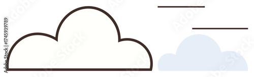 Two abstract cloud designs, one outlined and one shaded, complemented by three parallel lines. Ideal for weather, environment, simplicity, cleanliness, air quality, cloud computing minimalist
