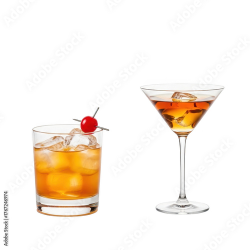 Two alcoholic cocktails isolated on transparent background